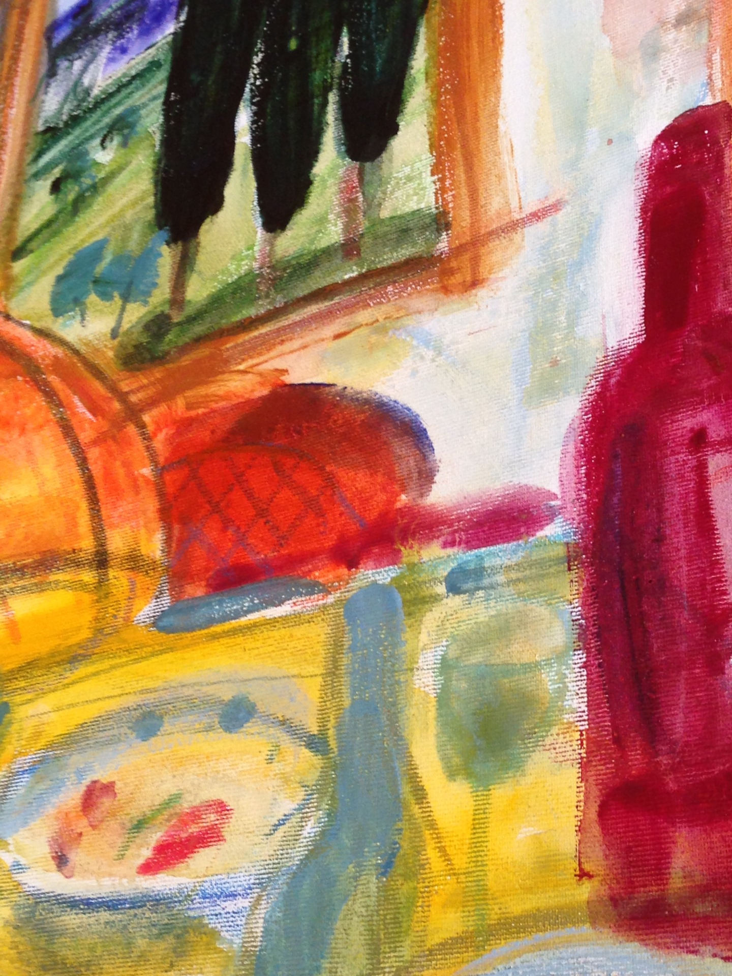 line. In Italy she also uses acrylic on canvas which gives a spontaneous
